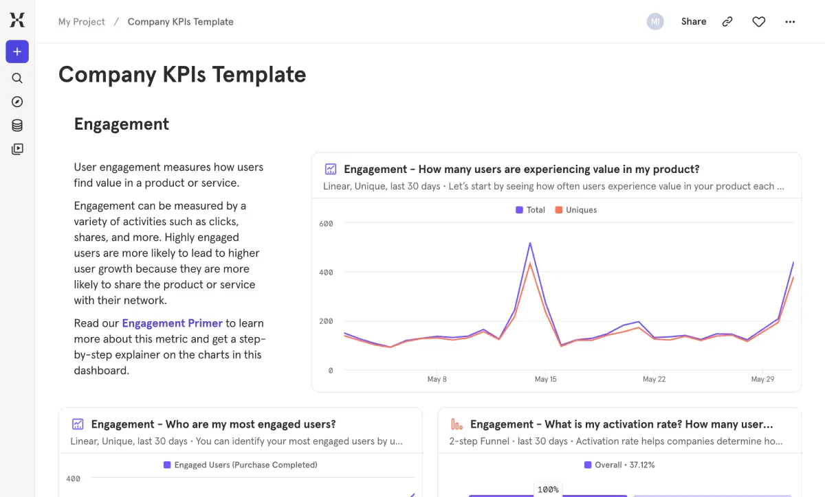 Discover Mixpanel’s core features through pre-built dashboard templates. Click any card to start a project with that template, or click PREVIEW BOARD to explore a live interactive demo. [cite: 2]
